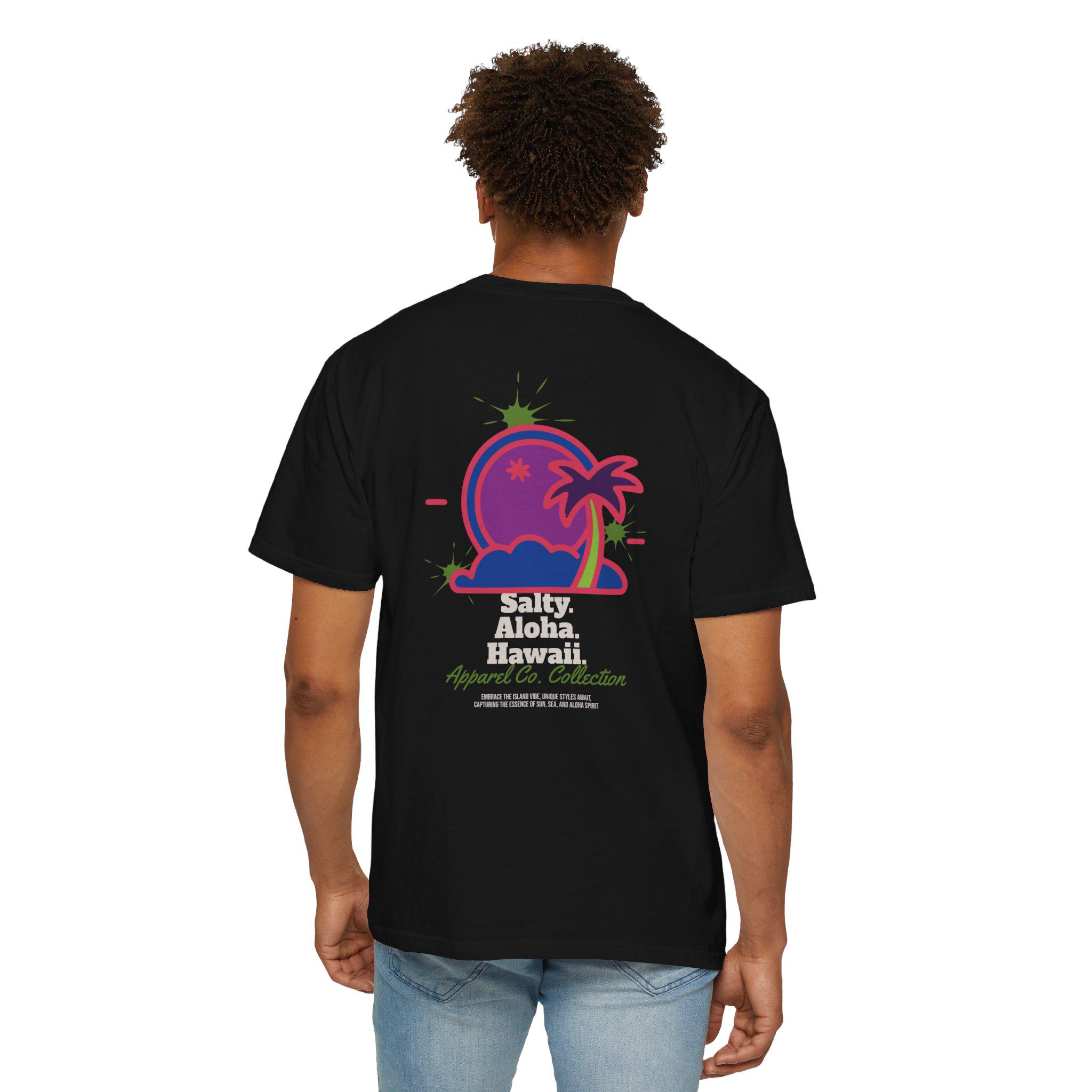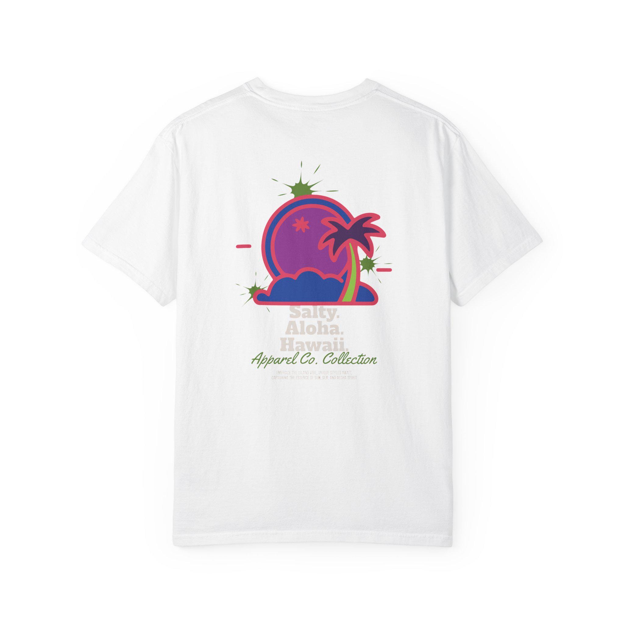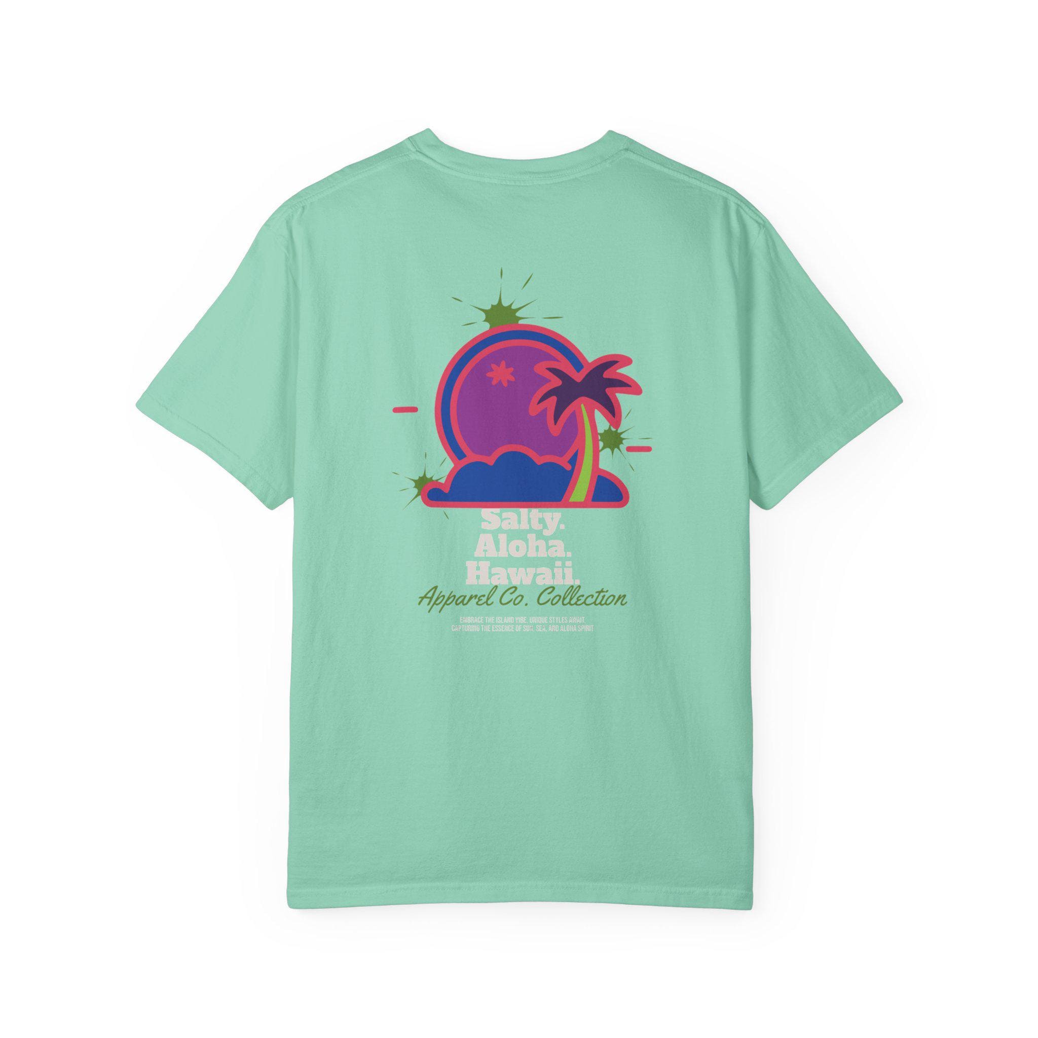 This SaltyAlohaHawaii Apparel Co T-shirt exudes a laid-back, beachy vibe, perfect for those who love the Hawaiian lifestyle. Made with high-quality, comfortable cotton, this garment-dyed tee is ideal for casual outings or as a souvenir from a vacation in Hawaii. It's a great gift for beach lovers, surfers, or anyone who enjoys the Aloha spirit. Perfect for summer, holidays, or any occasion where a relaxed, comfortable outfit is needed.