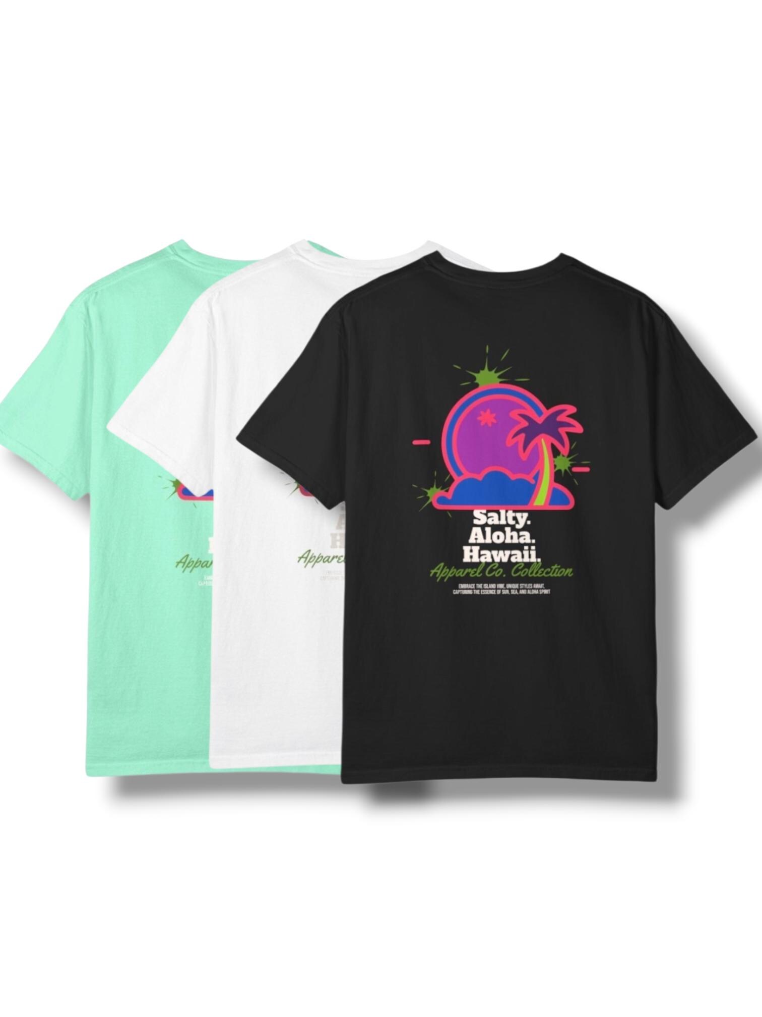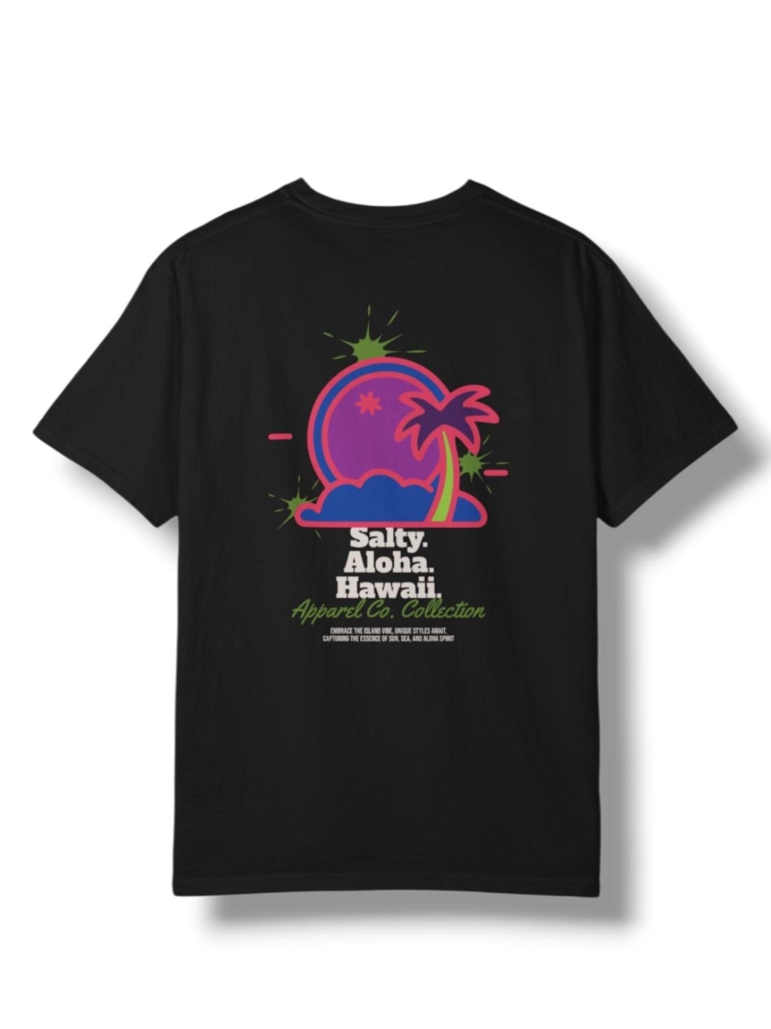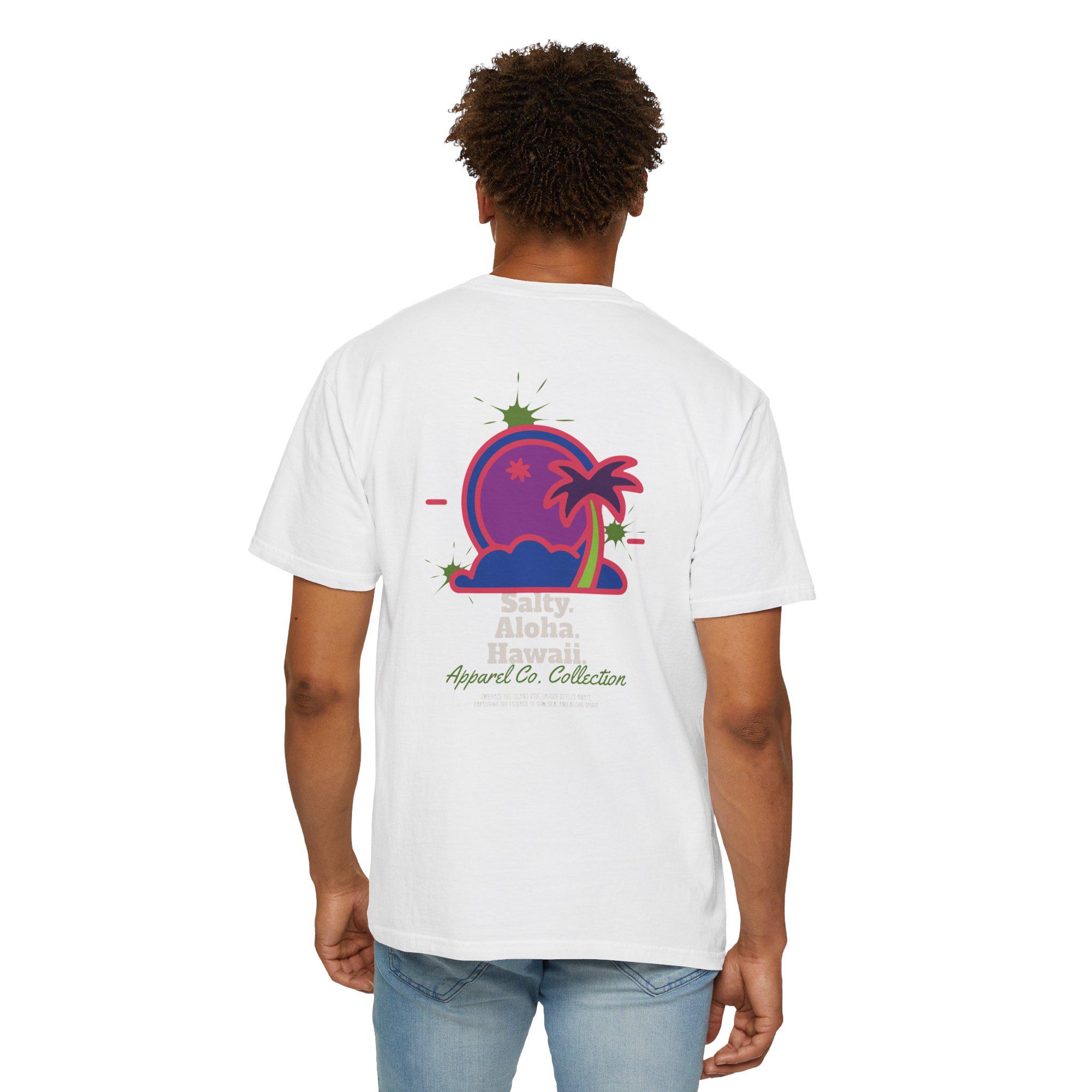 This SaltyAlohaHawaii Apparel Co T-shirt exudes a laid-back, beachy vibe, perfect for those who love the Hawaiian lifestyle. Made with high-quality, comfortable cotton, this garment-dyed tee is ideal for casual outings or as a souvenir from a vacation in Hawaii. It's a great gift for beach lovers, surfers, or anyone who enjoys the Aloha spirit. Perfect for summer, holidays, or any occasion where a relaxed, comfortable outfit is needed.