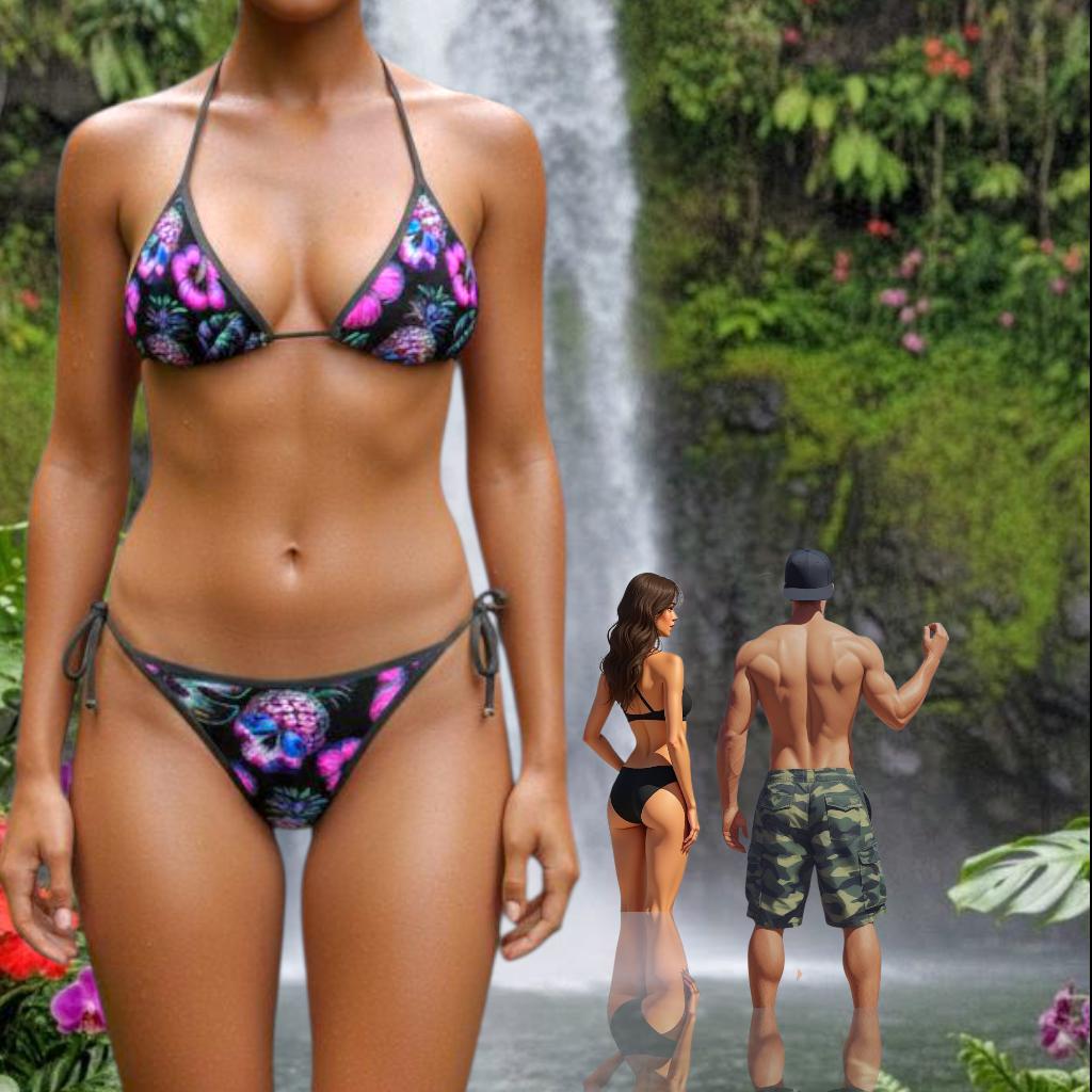 SaltyAlohaHawaii Apparel Co brings you a fun and edgy Pineapple Skulls swimsuit featuring vibrant colors and a unique design. This two-piece swimsuit with elastic straps and padded inner lining is perfect for women who want to make a statement at the beach or pool. Ideal for tropical vacations, summer parties, and beach days.