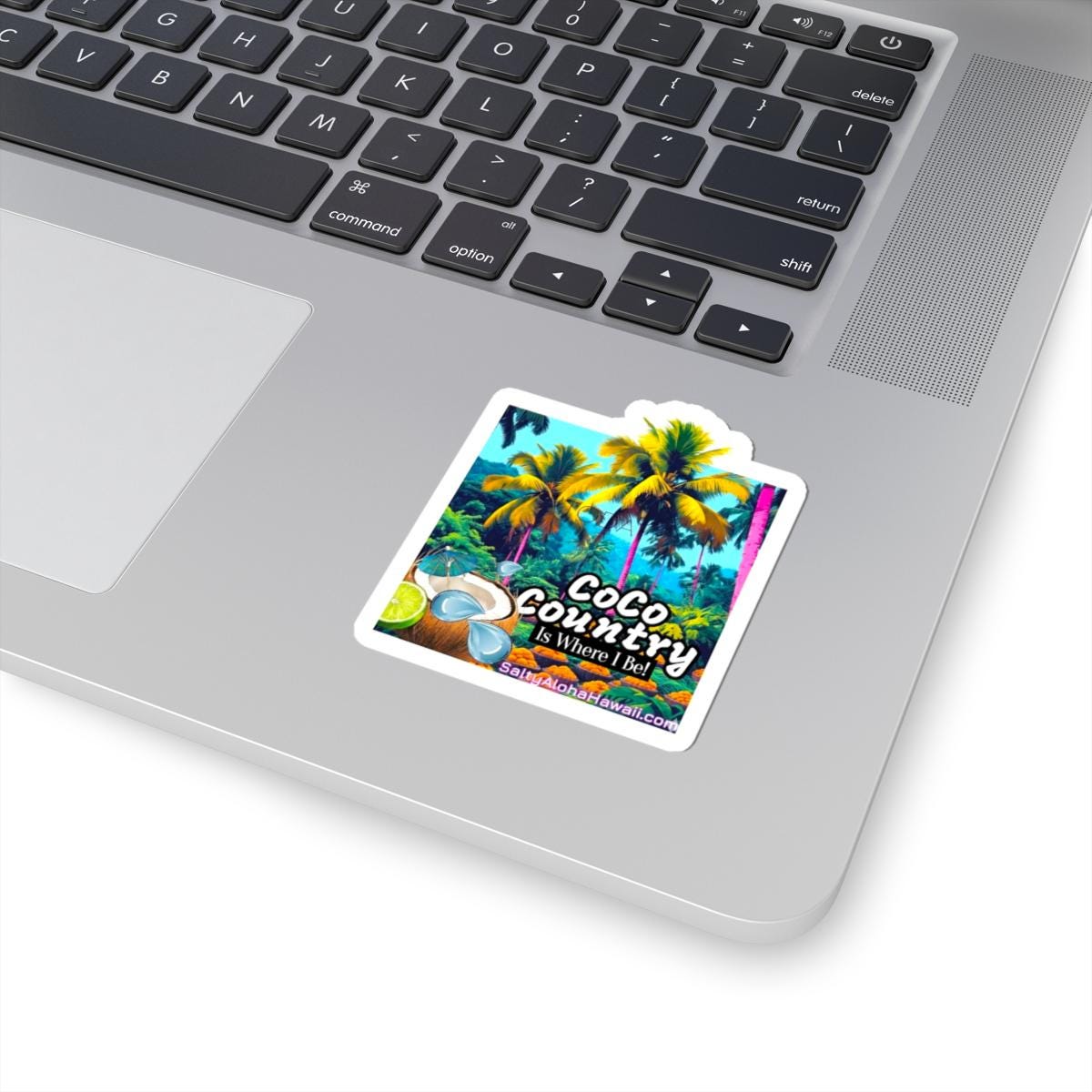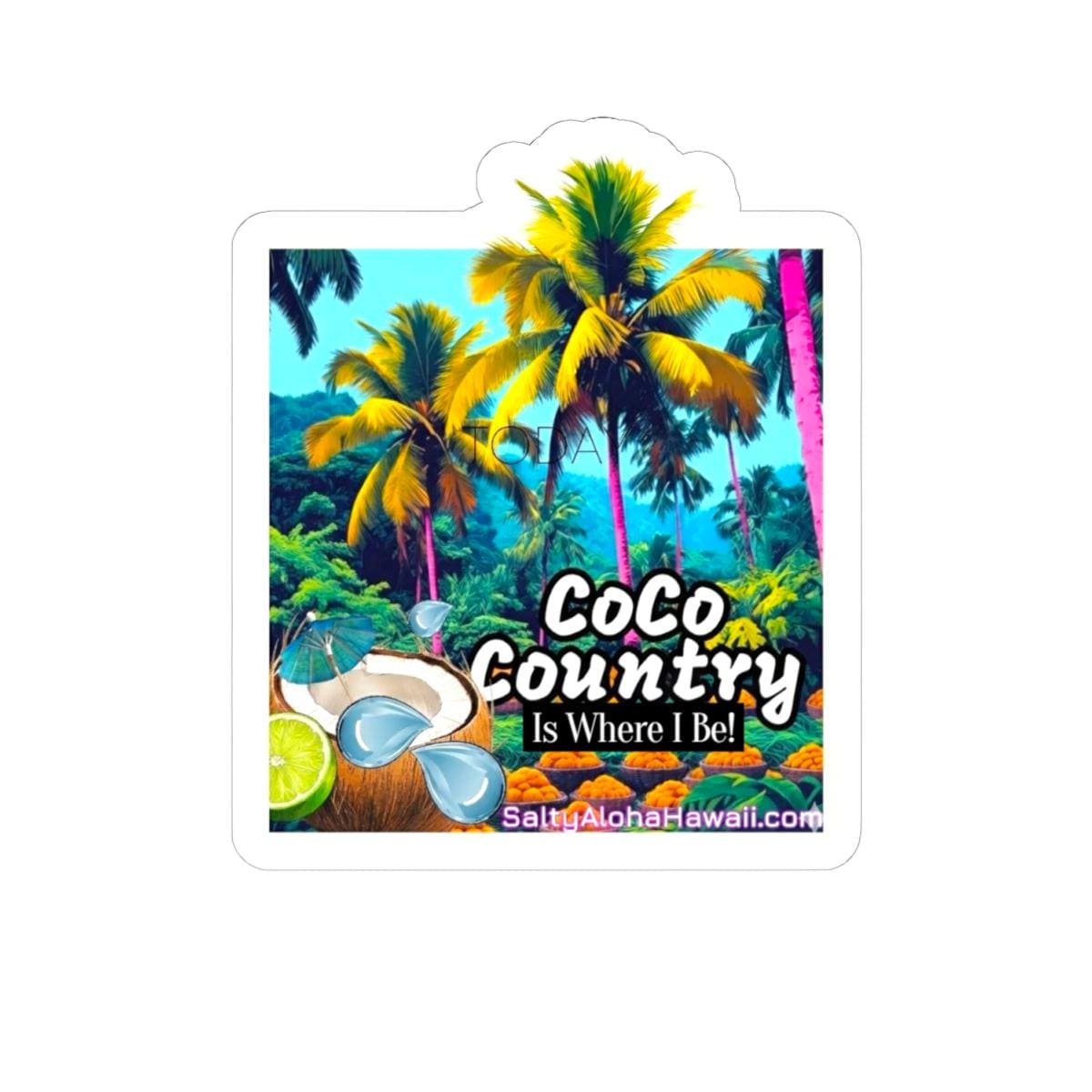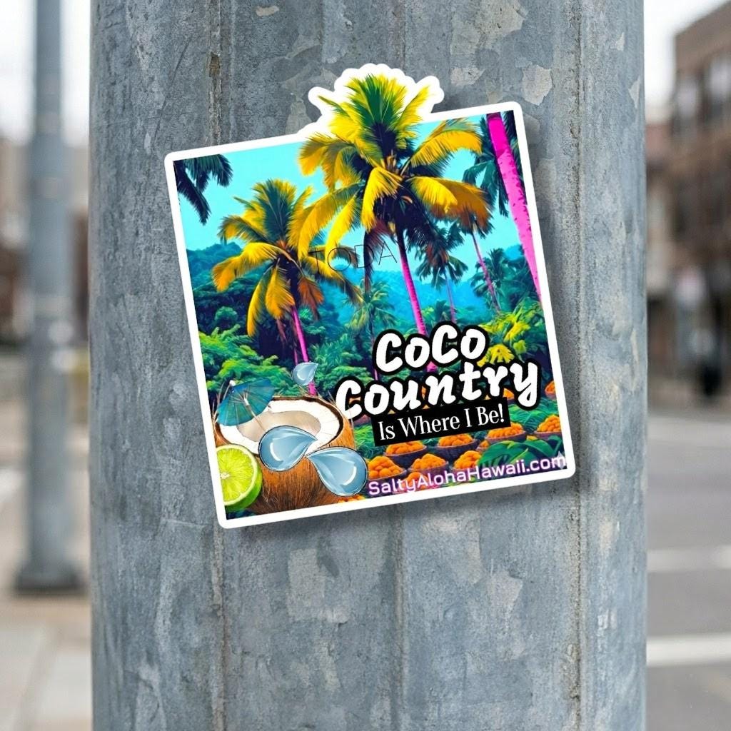 A glossy kiss-cut sticker that brings a warm, tropical country vibe to your everyday things. Rich, eco-solvent inks make the colors pop — think sunset oranges and palm greens — while the scratch-resistant glossy paper keeps the artwork bright through daily use. These stickers are made from durable vinyl with strong permanent acrylic adhesive for bubble-free application on smooth surfaces like laptops, journals, and windows. Choose white or transparent backing and from four handy sizes to match your space. Note: designed for adult use and intended for indoor decorative use (not waterproof).