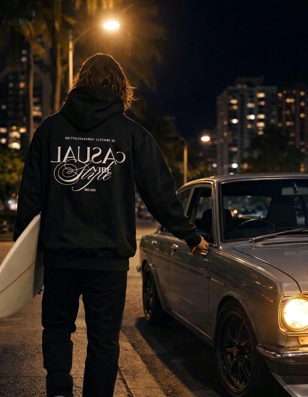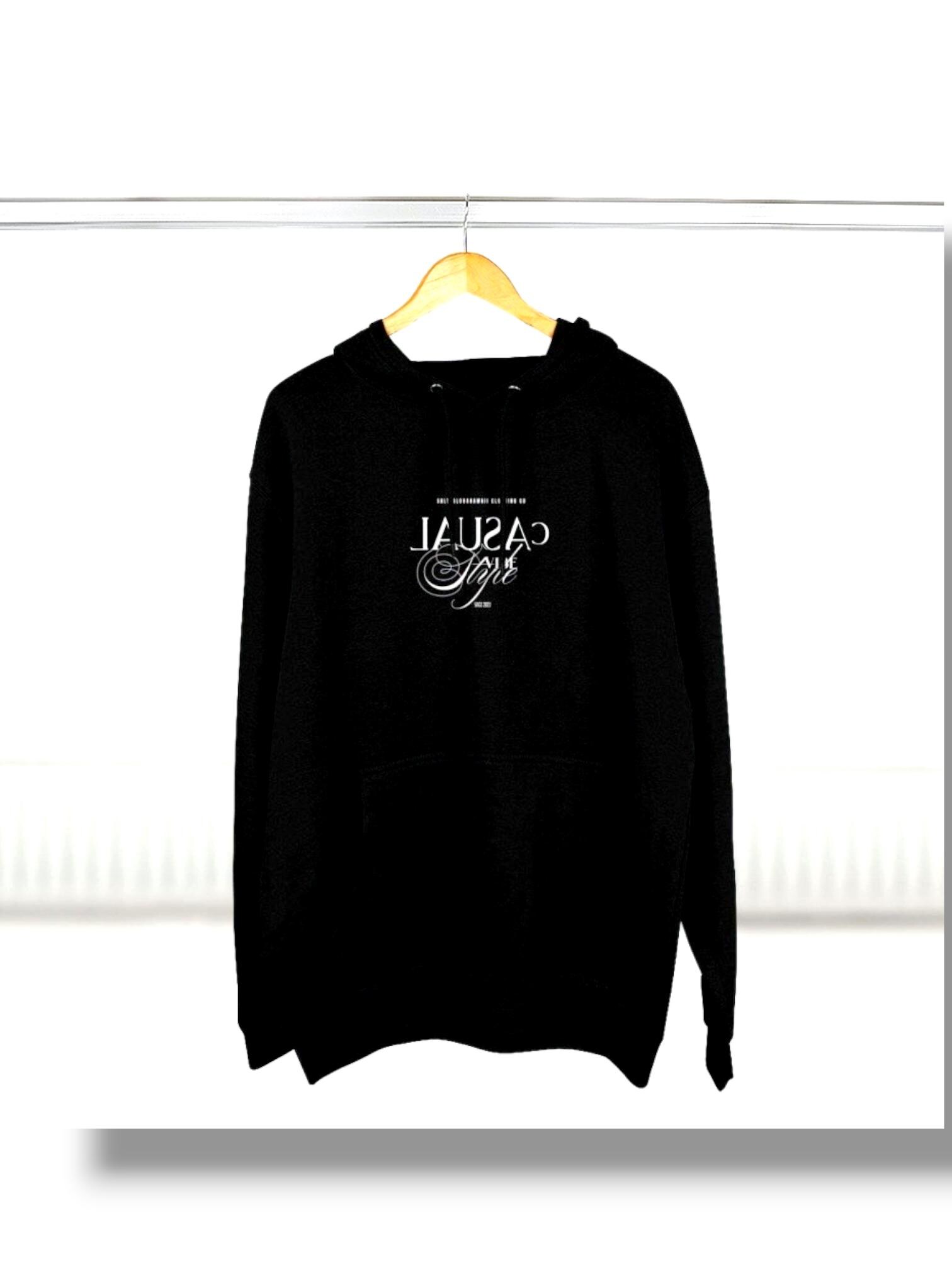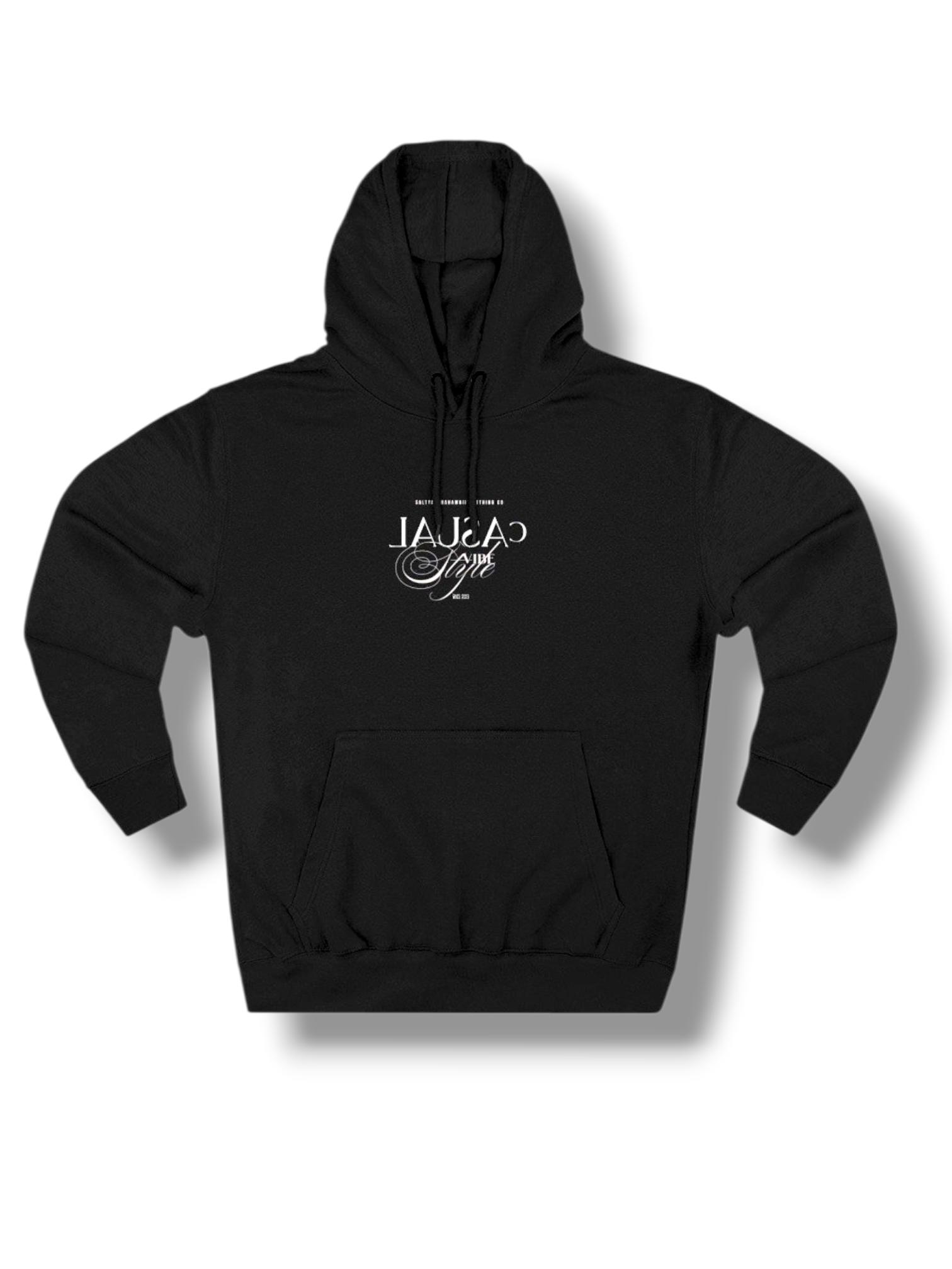 A soft, midweight hoodie that reads like a quiet declaration. The three-panel hood and adjustable drawstrings shape a protective, cozy silhouette while the kangaroo pocket keeps hands warm on brisk walks or late-night drives. Elegant, mirrored lettering and script across the chest and back give the piece a refined streetwear mood—subtle but confident. Built from combed ring-spun cotton blended with recycled polyester, the fleece feels smooth against skin and holds its shape through wear. Thoughtful details—twill necktape, double-needle topstitching, tear-away label, and optional embroidery placement—make it feel elevated in everyday life. Wear it with the hood up on rainy mornings, layered over a tee for coffee shop hangs, or tossed over lounge clothes for relaxed evenings at home.